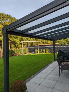 6,00 m x 3,50 m in Anthrazit mit milchigen Verbundsicherheitsglas.